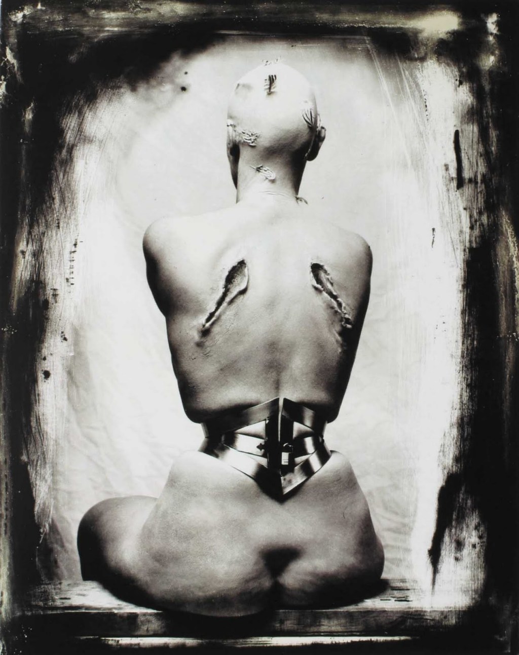 Joel Peter Witkin’s Woman Once a Bird, one of Witkin’s less shocking pictures, believe it or not. McKean uses the same techniques—the dark framing around the edges of the picture, the use of harsh physical imagery to convey ideas from myths, the ornamental constriction of his models’ bodies—to make much stranger but less horrifying images. Witkin’s work predates most computer effects; he used pieces of corpses in some of his photographs and people with birth defects—"extraordinary bodies,“ he called them—in others. There’s a glorification of the necrotic that I find disgusting in his work, and a celebration of weirdness that I find really reassuring and uplifting.