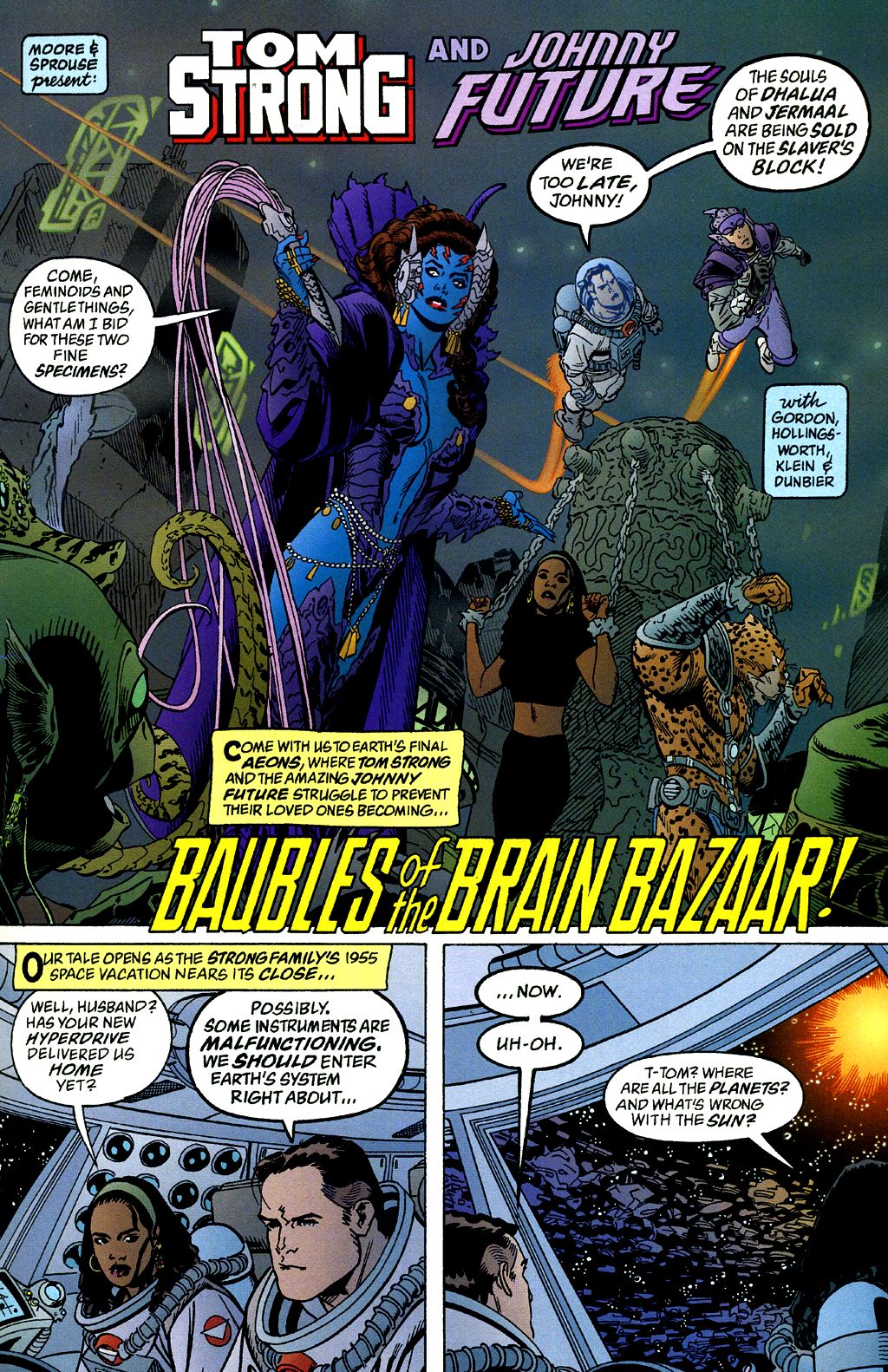 Here’s a page from Tom Strong #14 by Chris Sprouse, a wonderful artist who took over on Supreme and left the book with Moore after publisher/creator Rob Liefeld’s backers pulled out, leaving the publisher in limbo for several years. Moore and Sprouse reworked the Supreme stories they’d been working on and a pitch for another Liefeld character called Prophet into Tom Strong and it’s some of both creators’ strongest work.
