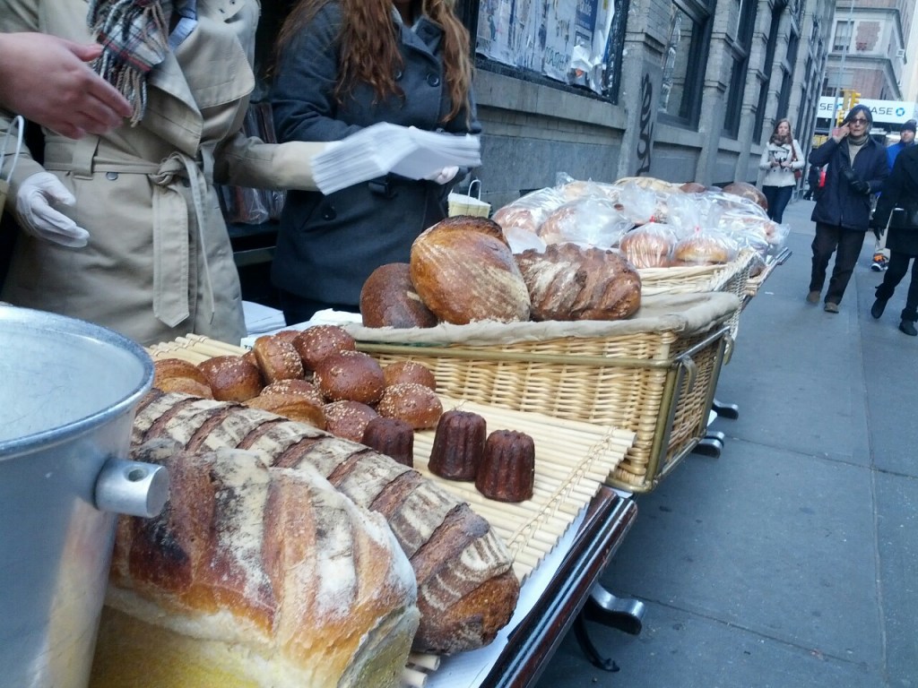 We went up the island reverse-trick-or-treating with a bag of juice boxes, granola bars, paperback books and and pop tarts this morning. Several places were giving away or selling cheaply bread, produce, and anything else that would spoil. A camping goods store was giving away energy bars and fruit snacks, advertising loudly that they were open for business. All along the streets in Soho, homeless men and a couple of women were digging through trash cans or camped out with cardboard placards. By the time we got to Washington Square Park, we figured we’d pass out most of the remaining food and juice to the regulars who hang around that park, dealing three-card monte, doing heroin, playing chess, or just sitting quietly and reading yesterday’s Daily News. I made the rounds, making a point to hit the freegan kids last (there’s something about people who choose the homeless life as a political statement that sucks a lot of the charity out of me, but they took some books, which made me happy). Just before we left the park, I went up to an old guy sitting on one of the concrete pilings that keeps people from driving their cars into the square, who looked like he was crying.